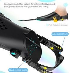 These high-quality flippers are crafted from a combination of durable PP, PC, and TRP plastics. The open heel design and adjustable straps ensure a perfect fit for various foot types and sizes. Equipped with a convenient quick release buckle, these swim fins maintain your preferred strap length, eliminating the need for constant adjustments with each use. The anti-deformation foot pocket is not only lightweight and corrosion-resistant but also incredibly durable. With a design that prioritizes comfort, these flippers provide a barefoot-like feel while preventing any discomfort or chafing. Dive into your underwater adventures with confidence and ease with these exceptional swim fins.
